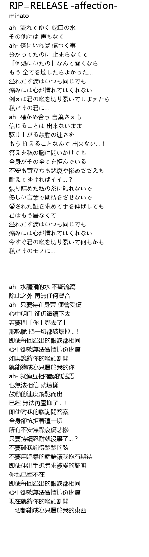 RIP=RELEASE -affection- Lyrics