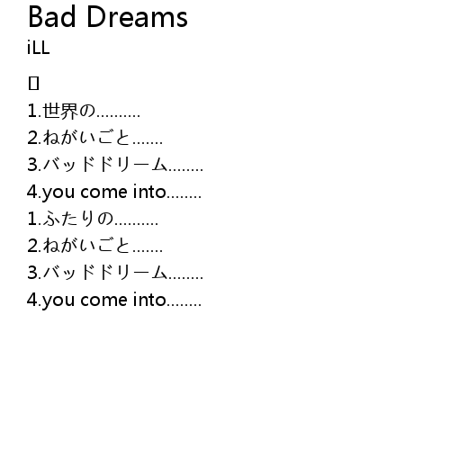 | Song | Bad Dreams |