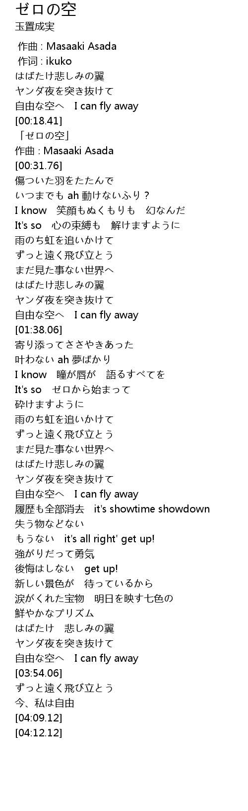 | [03:37.85] | はばたけ 悲しみの翼 |