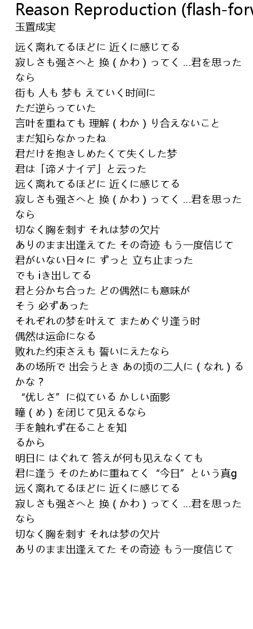 | Song | Reason Reproduction (flash-forward mix) |