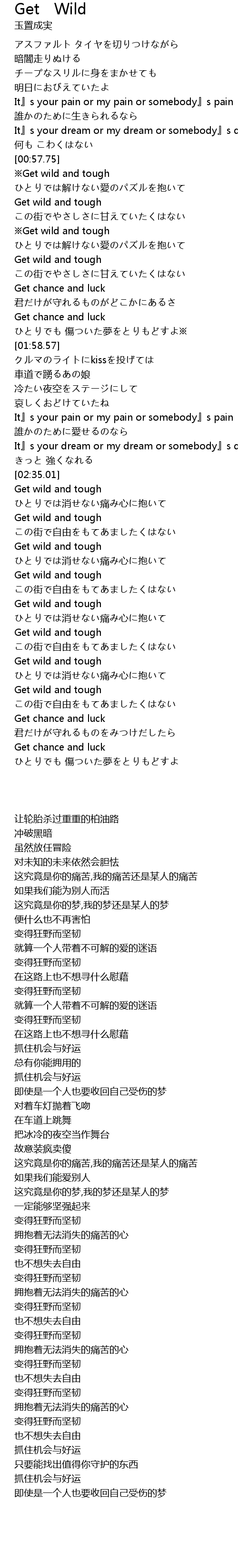 | [01:53.25] | ひとりでも 傷ついた夢をとりもどすよ※ |