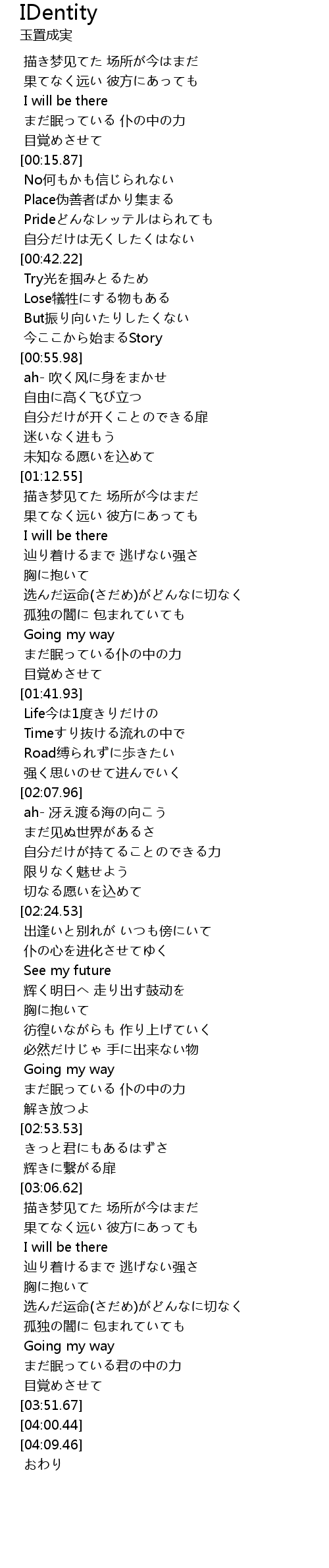 | [01:58.04] | Timeすり抜ける流れの中で |