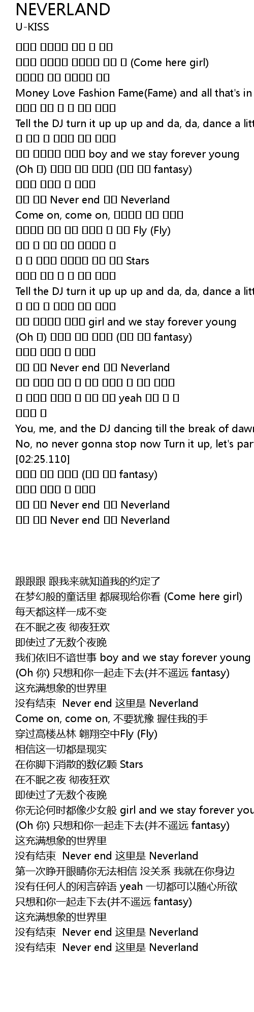 | [02:52.990] | 끝은 없어 Never end 여긴 Neverland |