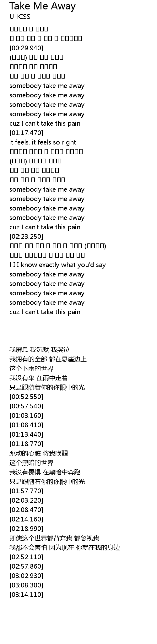 | [00:39.280] | 우산하나 없이 걸어왔어 |