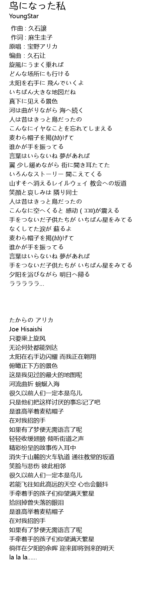 | [00:09.34] | 编曲:久石让 |