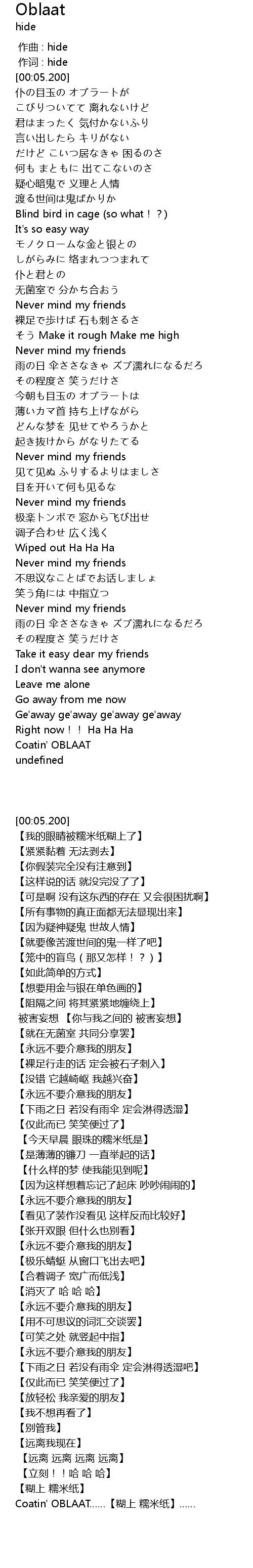 | [00:00.00] | 作曲 : hide |