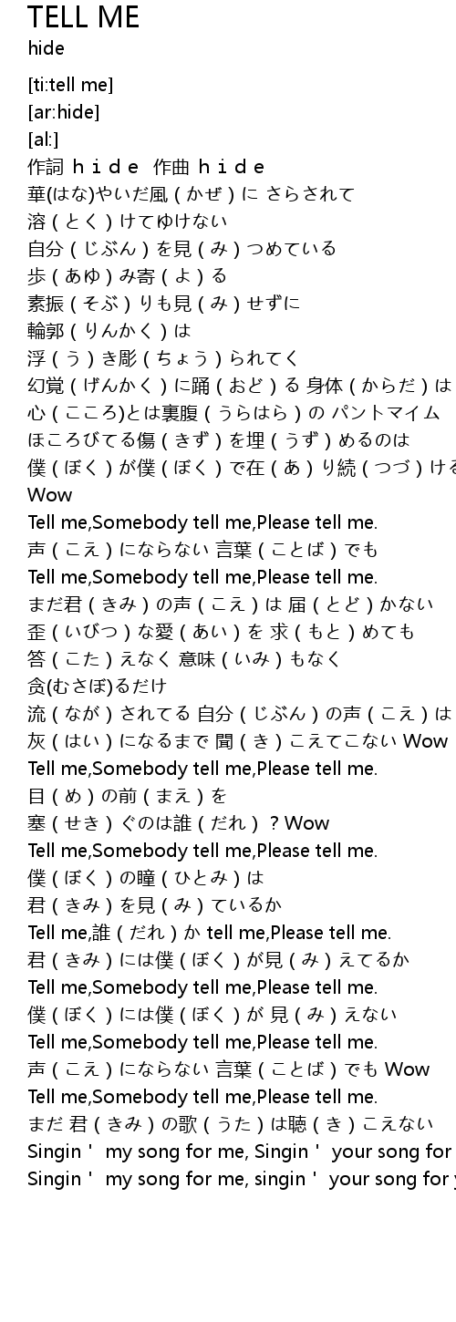 | [00:12.62] | 作詞 hide 作曲 hide |