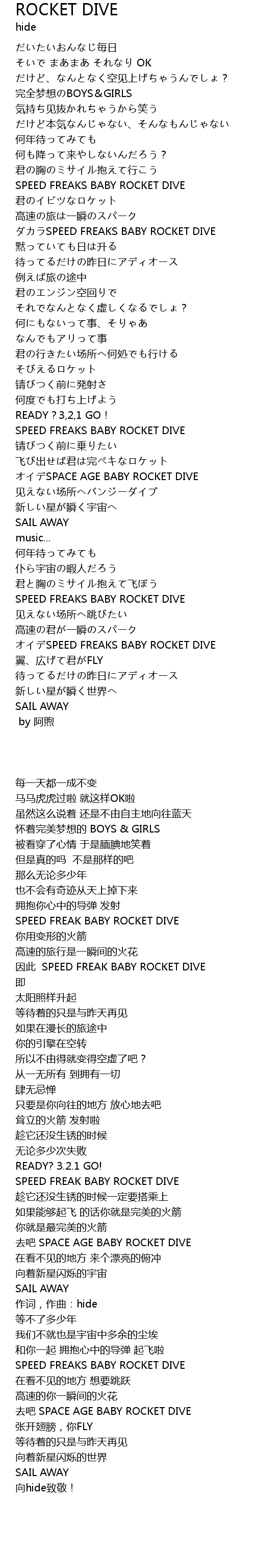 | [03:06.58] | オイデSPEED FREAKS BABY ROCKET DIVE |