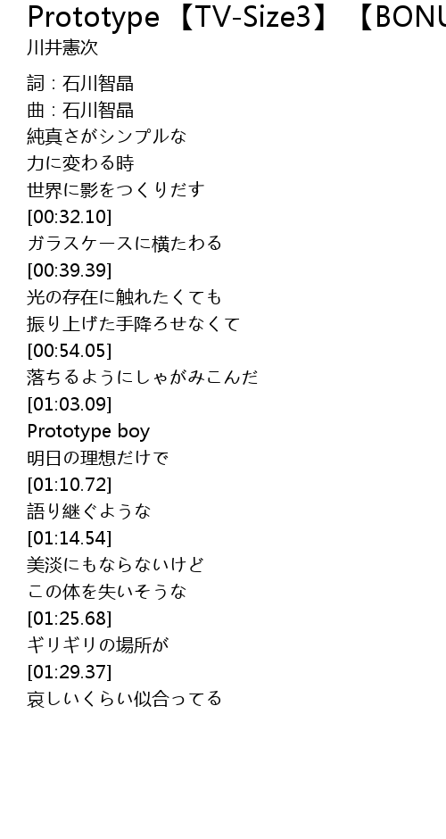 | Song | Prototype 【TV-Size3】 【BONUS TRACKS】 |