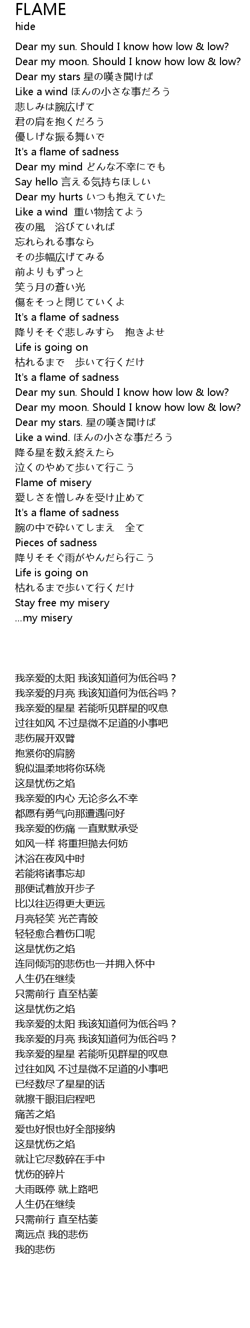 | [03:23.85] | Dear my sun. Should I know how low & low? |