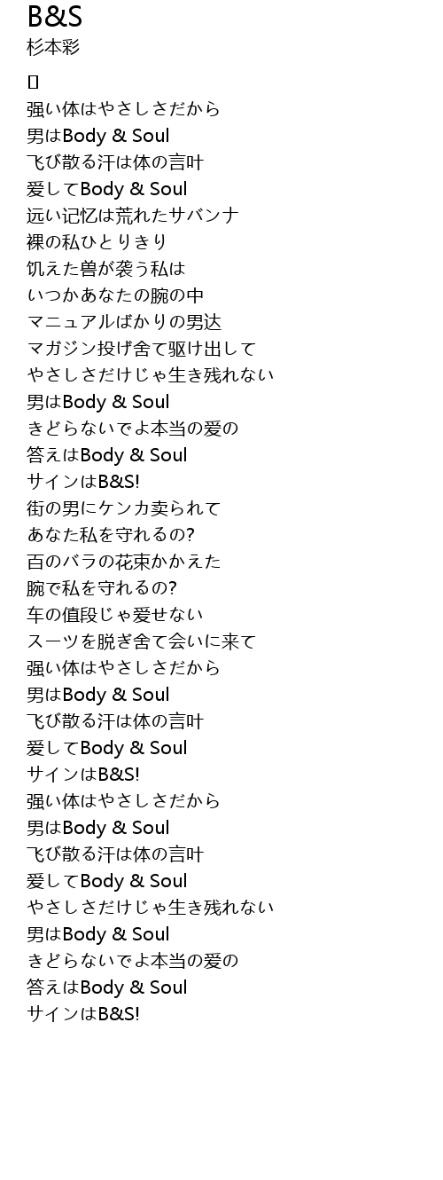 答えはBody & Soul |