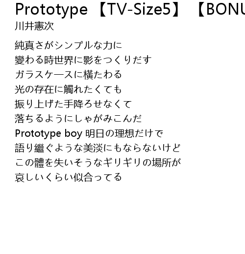 | Song | Prototype 【TV-Size5】 【BONUS TRACKS】 |