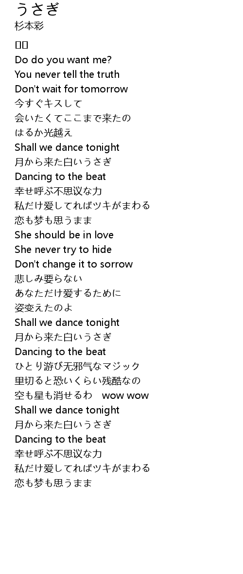 | Song | うさぎ |