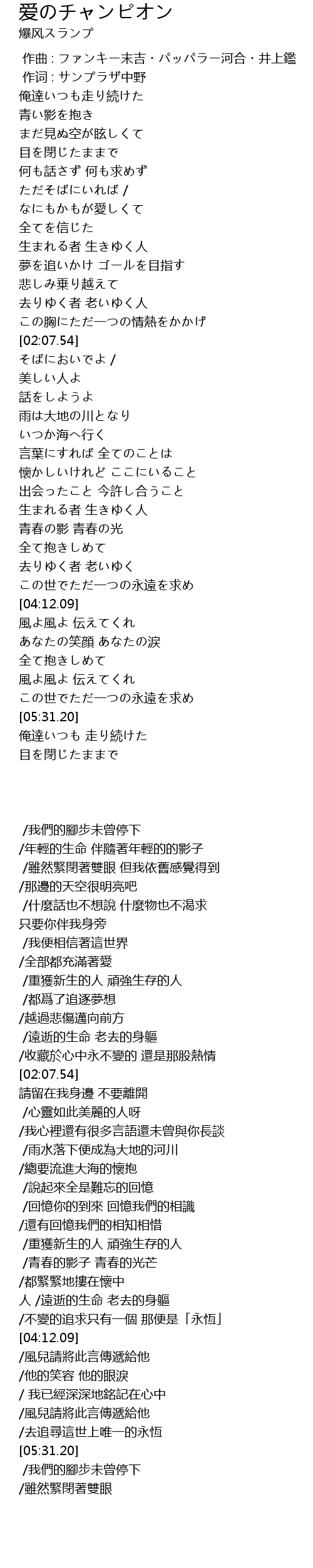 | [00:01.00] | 作词 : サンプラザ中野 |