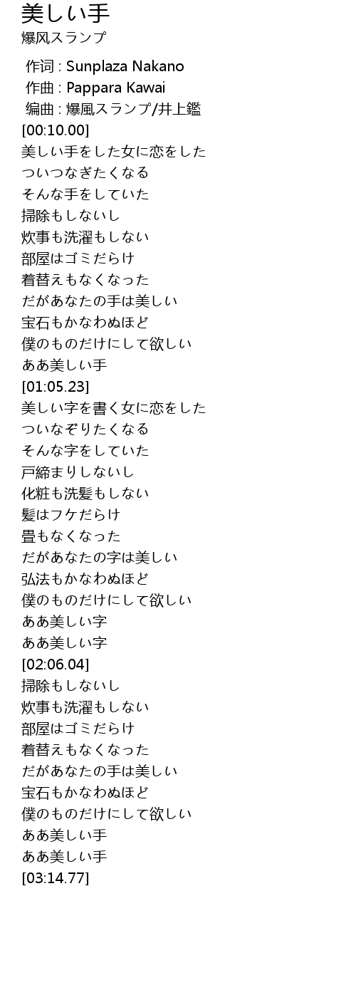 | [03:10.03] | ああ美しい手 |