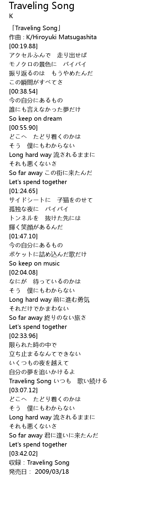 | [03:45.02] | 収録:Traveling Song |