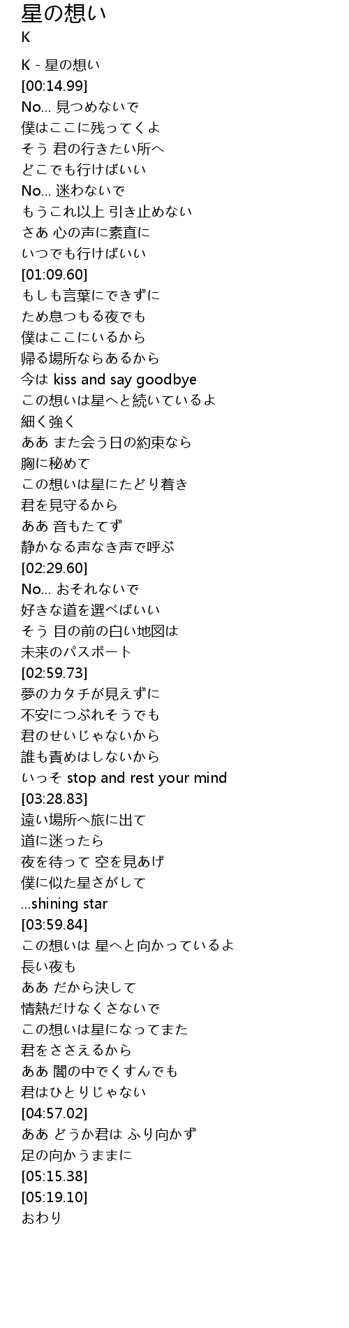 | [00:00.00] | K - 星の想い |
