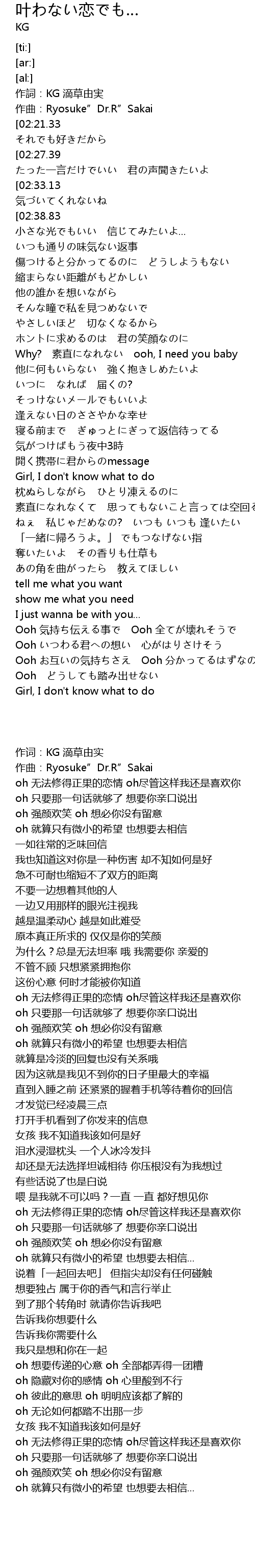 | [00:00.10] | 作詞:KG 滴草由実 |