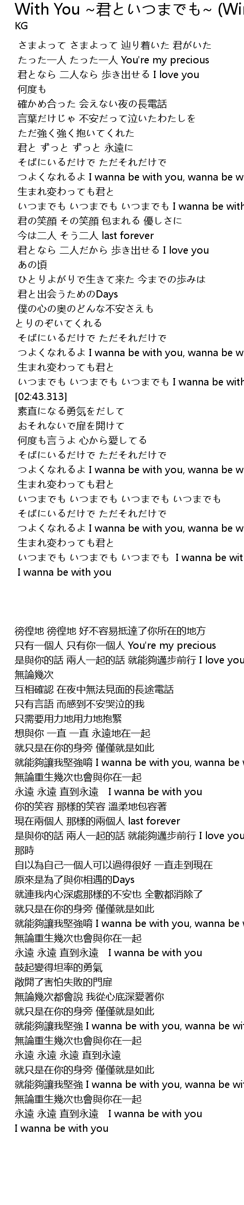 | [02:27.439] | いつまでも いつまでも いつまでも I wanna be with you |