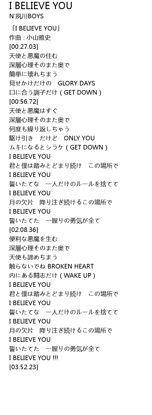 | [00:01.03] | 「I BELIEVE YOU」 |