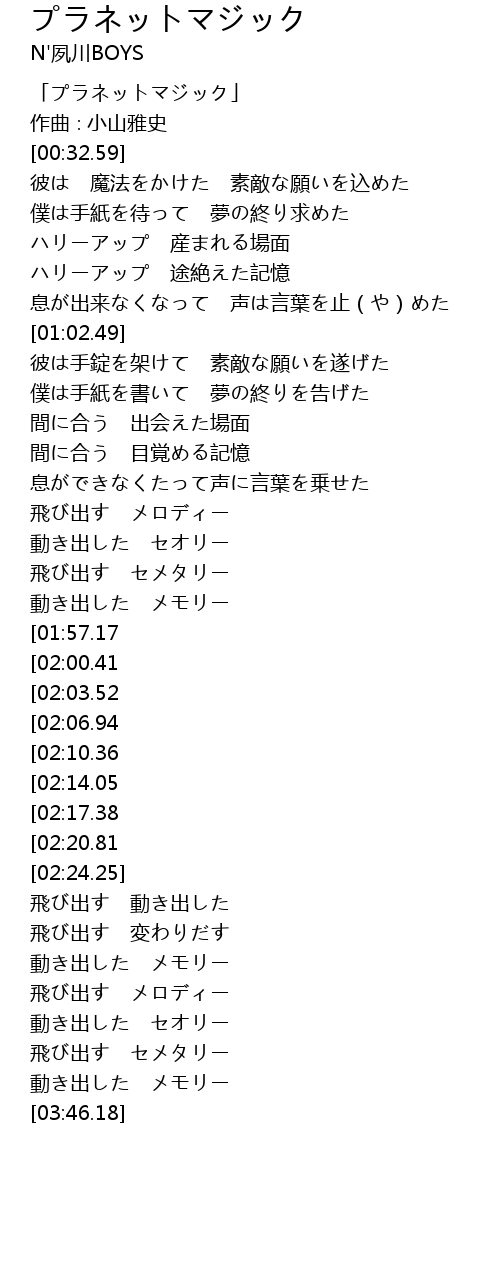 | [03:25.68][02:03.52] | プラネットマジック スタイルなんて |