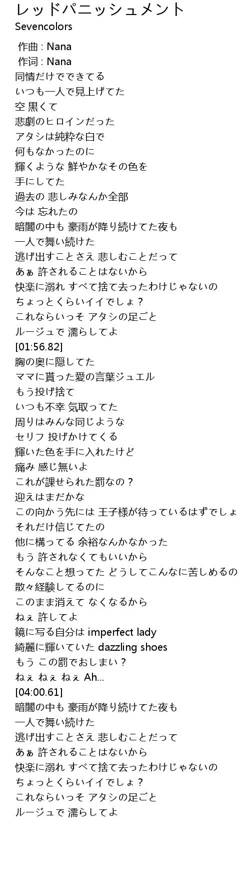 | [03:38.91] | 鏡に写る自分は imperfect lady |