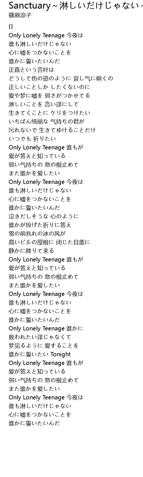 | Song | Sanctuary~淋しいだけじゃない~(R.Version) |