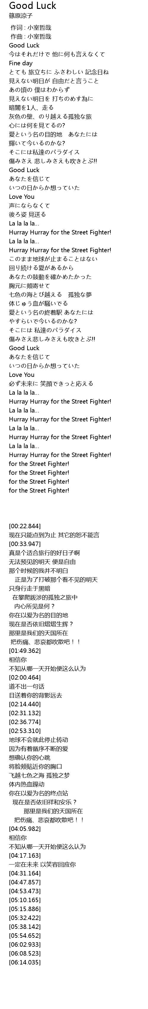 | [05:32.422] | Hurray Hurray for the Street Fighter! |