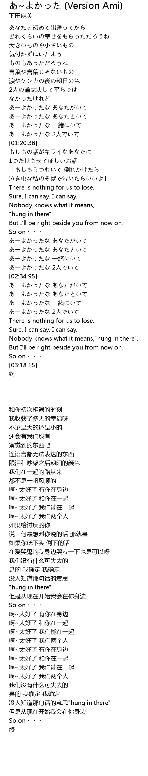 | [03:07.58] | Nobody knows what it means," hung in there". |