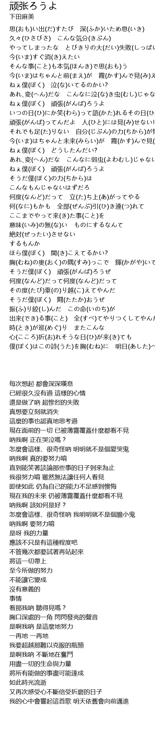 | [03:19.10] | そうだ僕(ぼく) 頑張(がんば)ろうぜ |