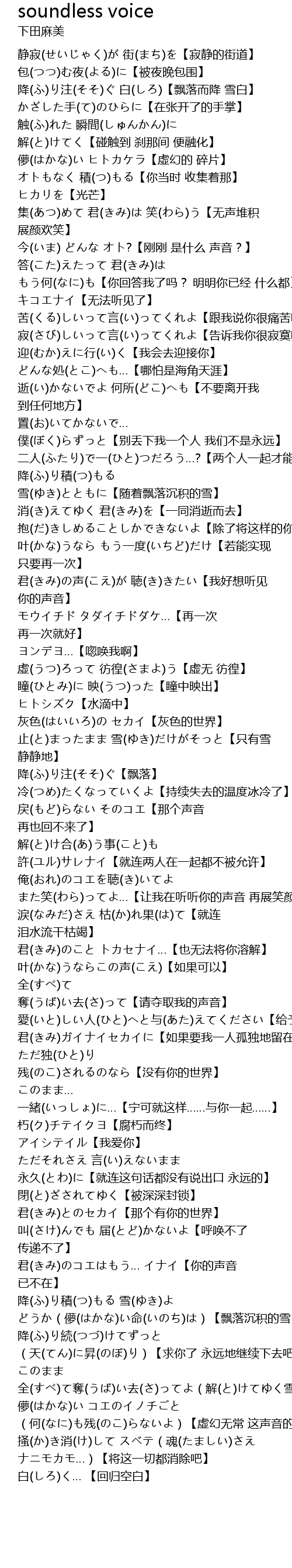 | [03:17.420] | 全(すべ)て 奪(うば)い去(さ)って【请夺取我的声音】 |