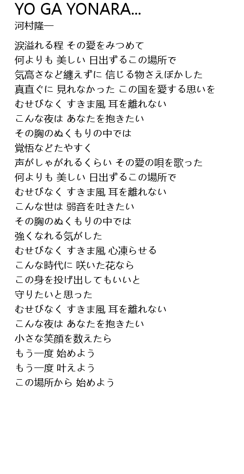 - YO GA YONARA...