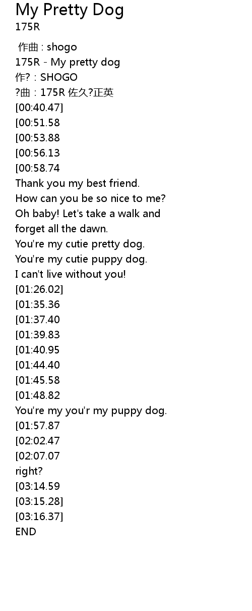 | [02:50.79][01:48.82] | You're my cutie pretty dog. |