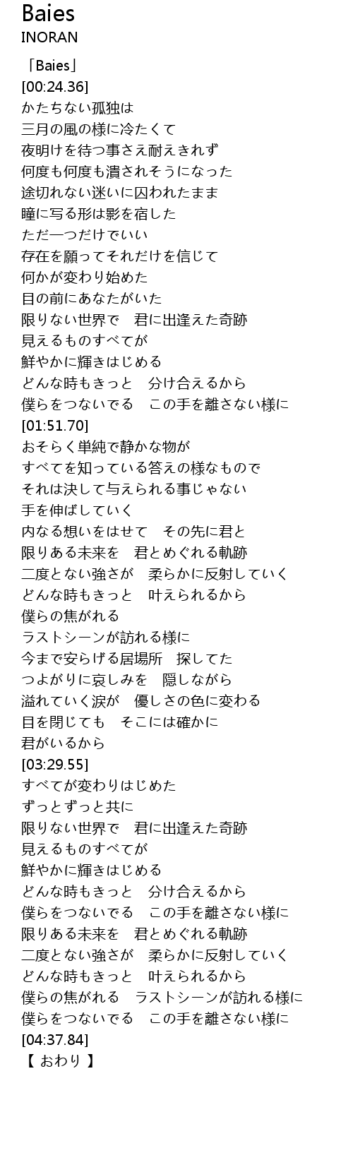 | [00:01.36] | 「Baies」 |