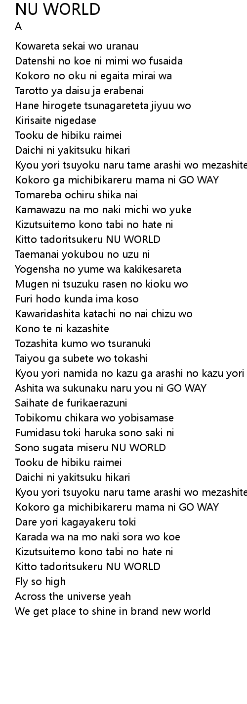 Kyou yori tsuyoku naru tame arashi wo mezashite |