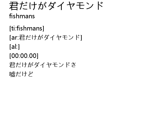 | [00:00.07] | 君だけがダイヤモンドさ |