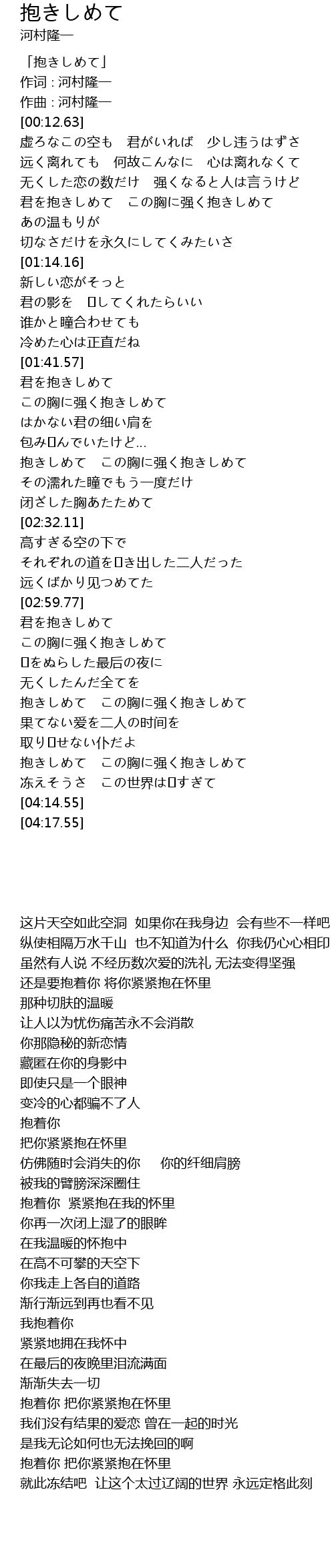 | [03:51.14] | 抱きしめて この胸に强く抱きしめて |