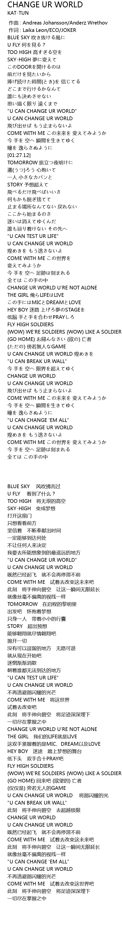 | [03:36.65] | U CAN CHANGE UR WORLD |