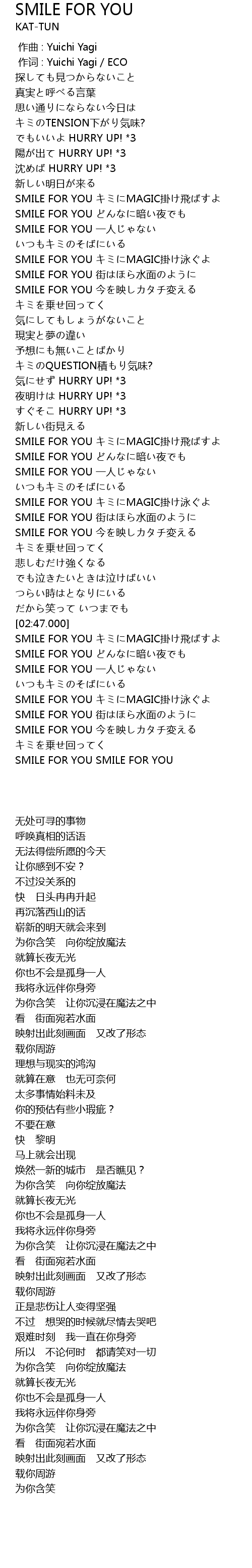 | [02:58.800] | SMILE FOR YOU yī rén |