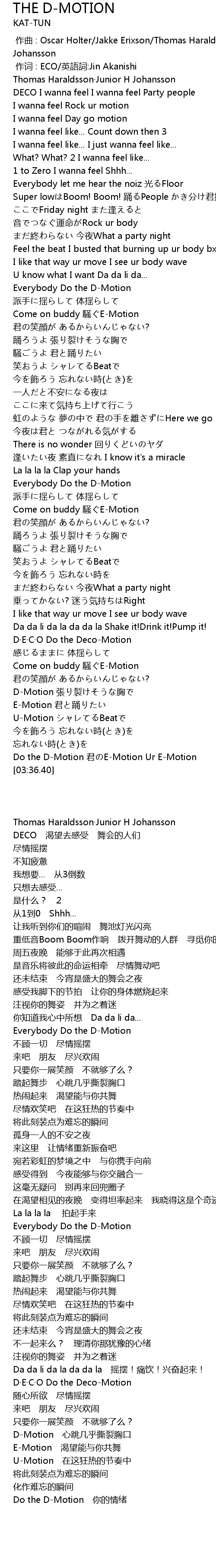 | [03:25.40] | Do the DMotion jun EMotion Ur EMotion |
