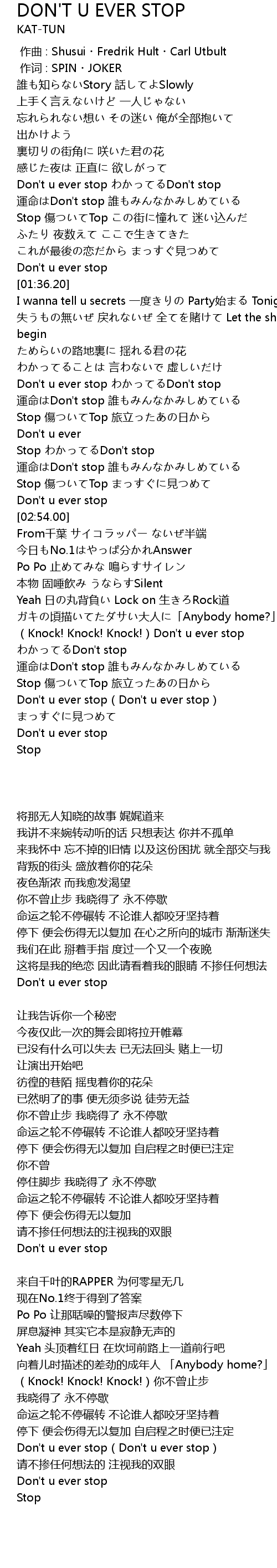 | [02:35.70] | Stop Don' t stop |