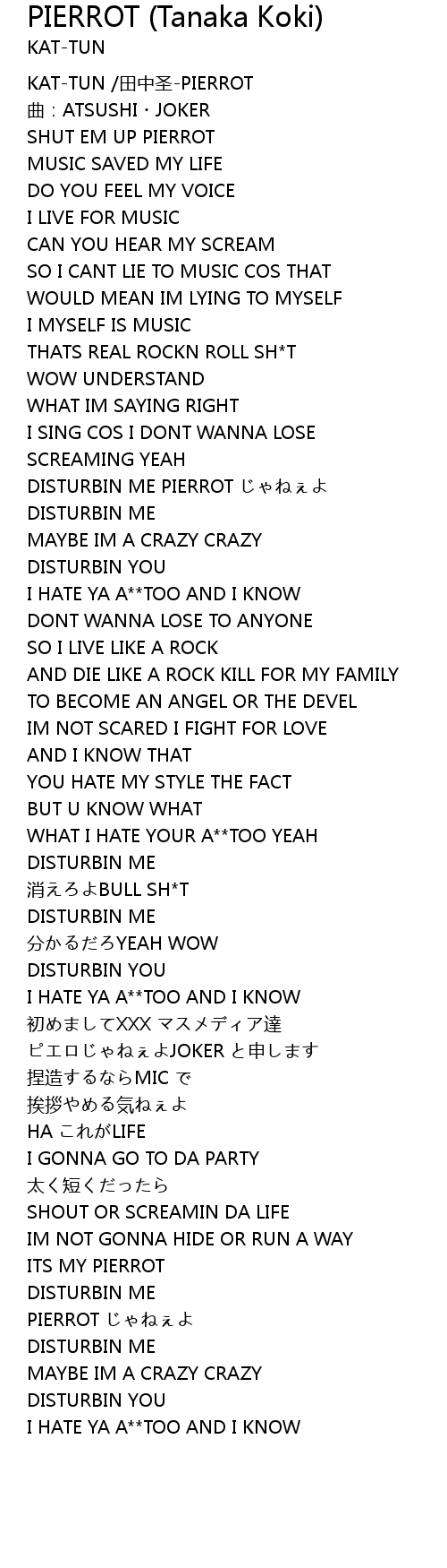 | [01:15.242] | DISTURBIN ME PIERROT じゃねぇよ |