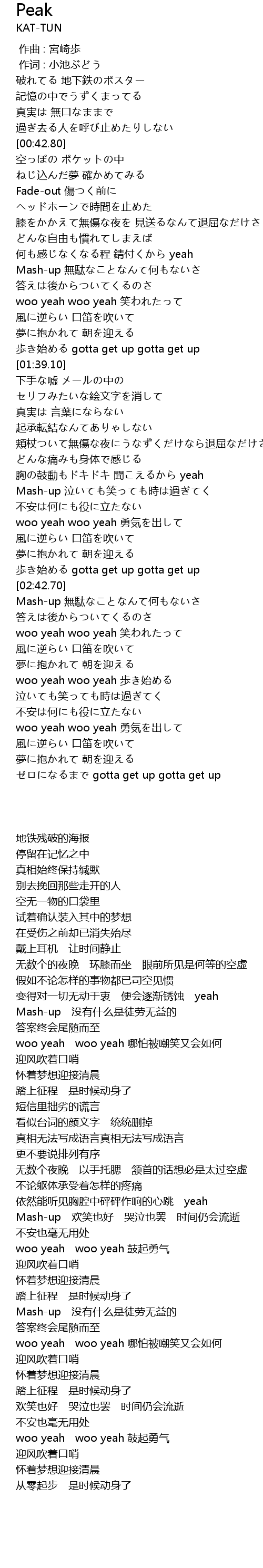 | [02:38.00] | bù shǐ gotta get up gotta get up |