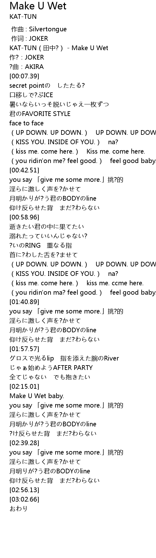 | [00:00.00] | KAT-TUN(田中?) - Make U Wet |