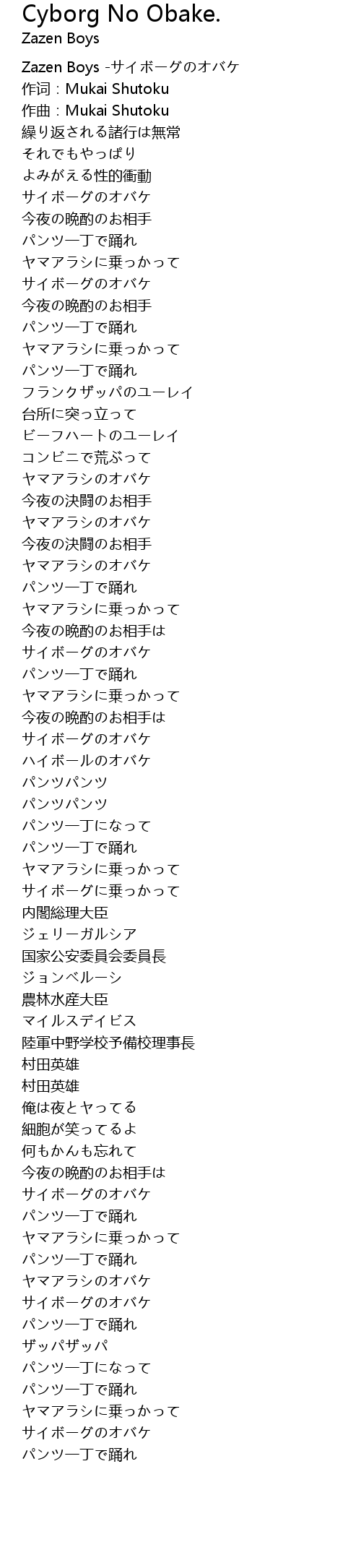 | [00:00.165] | Zazen Boys -サイボーグのオバケ |