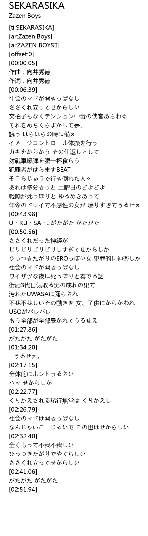 | [00:44.63] | U・RU・SA・I がたがた がたがた |