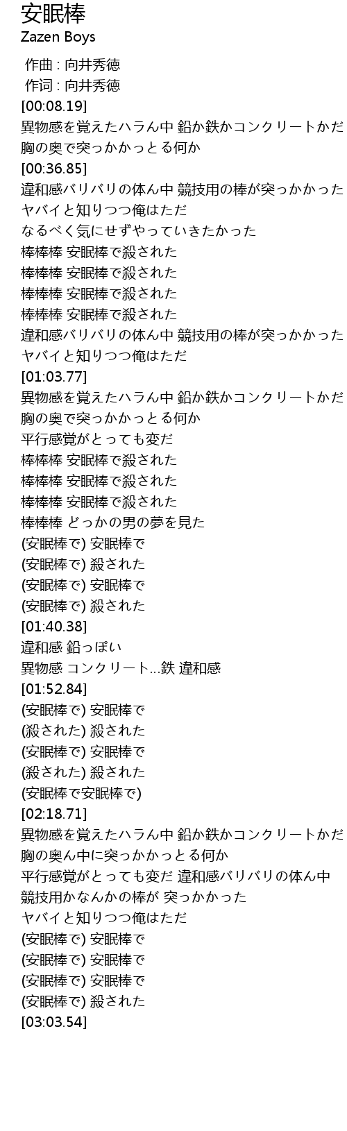 | [00:55.55] | 棒棒棒 安眠棒で殺された |