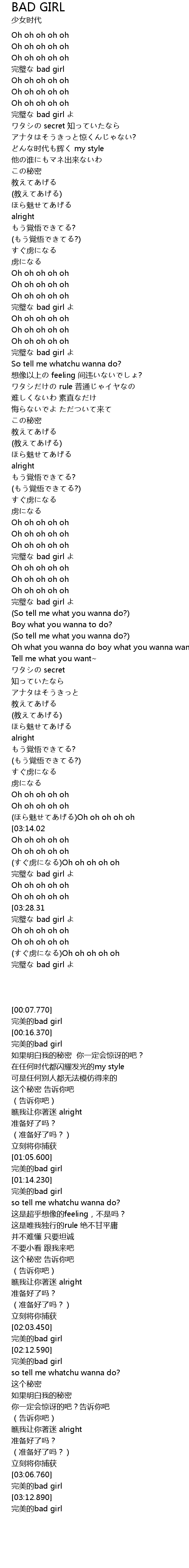 | [03:22.70] | wán bì bad girl |