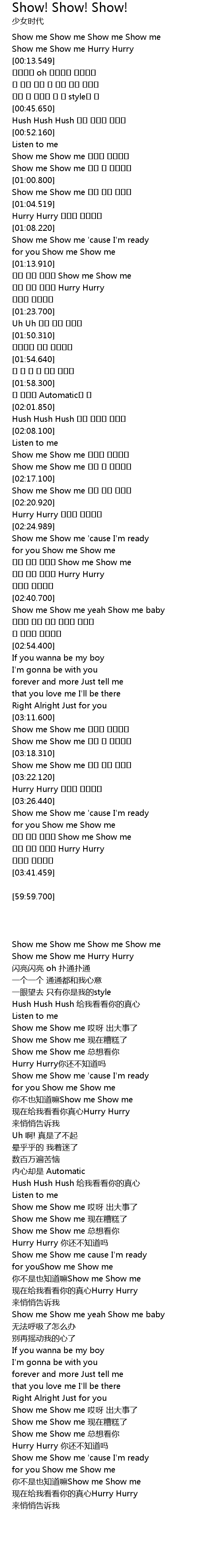 | [00:08.100] | Show me Show me Hurry Hurry |