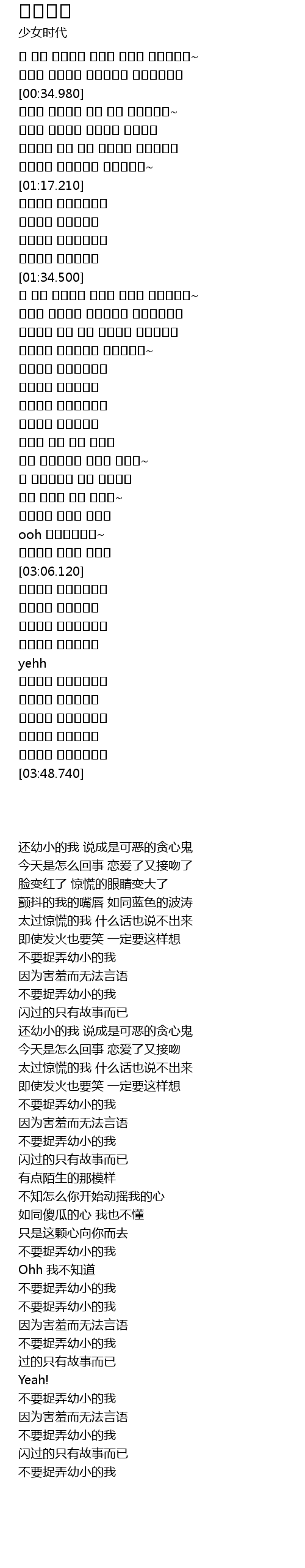 | [03:37.430] | 어리다고 놀리지말아요 |